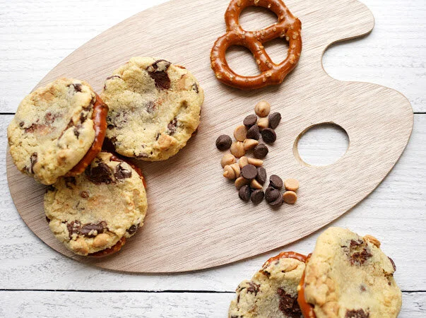 Chewy chocolate chip, peanut butter chip cookie baked into a Old Tyme pretzel for the perfect sweet & salty combination.